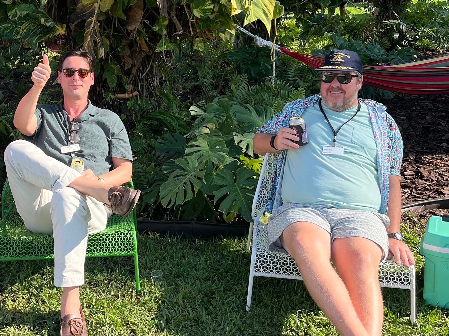 “It’s about asking for help.” Justin H. Long is pouring out rum into plastic shot glasses as we sit in a garden. It’s a scorching December afternoon in Miami. His 4-year-old daughter is chasing chickens in circles. In front of us is a Laser sailboat he’s driven snout first into the grass. Balancing it is a Solitaire Palm tree growing from its bow.